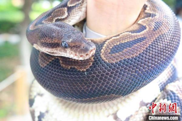 原色球蟒性情温和。 陈怡婷 摄