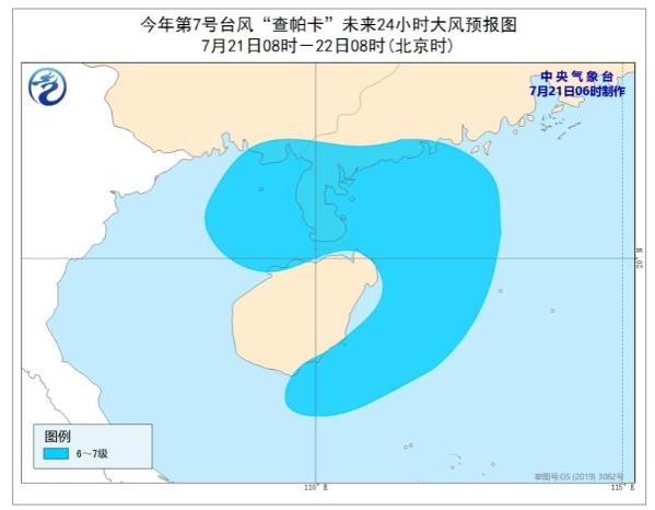 另外,今年第7号台风“查帕卡”于7月20日21时50分前后在广东省阳江市江城区沿海登陆,登陆时中心附近最大风力有12级(33米/秒)。今天(21日)早晨“查帕卡”在广东省阳江市境内减弱为热带风暴级,早晨5点钟其中心位于北纬21.8度、东经111.6度,最大风力有8级(20米/秒),中心最低气压为995百帕。