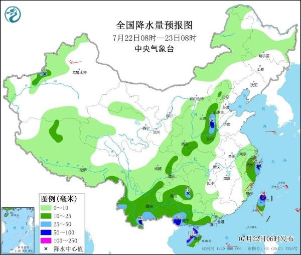 22日6时,中央气象台发布暴雨黄色预警:预计22日8时至23日8时,河北西南部、河南西北部、广西南部、广东雷州半岛、海南岛西北部、云南南部、浙江中北部沿海、台湾岛中北部 等地的部分地区有大到暴雨。上述部分地区伴有短时强降水,局地有雷暴大风等强对流天气。