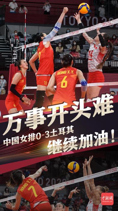 中新网客户端北京7月25日电(刘星晨)北京时间25日下午,2020东京奥运会女排小组赛进行,中国女排在有明竞技场迎来了本届比赛的首个对手,土耳其女排。面对着对手强大的攻势,中国女排败下阵来,0-3负于对手无缘开门红,三局比分分别为:21-25,14-25,14-25。