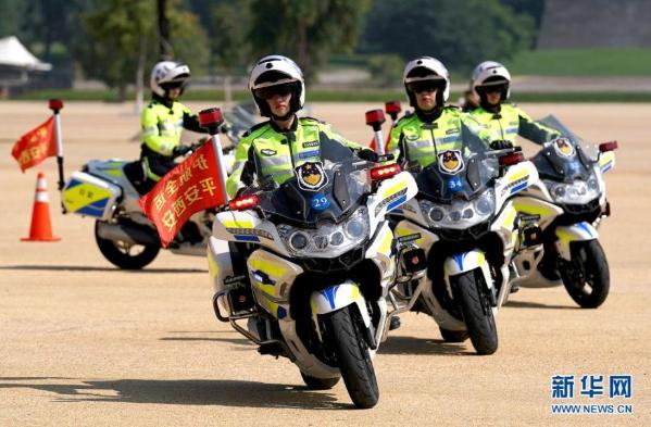 7月25日,西安市公安局交警支队女子铁骑在出征仪式上进行骑行表演。当日,由50名女警组成的西安市公安局交通警察支队女子铁骑队伍亮相古城。在出征仪式上,女骑警们进行了站立骑行、绕桩、隐蔽骑行等一系列铁骑表演,尽显巾帼风采。 新华社记者 刘潇 摄