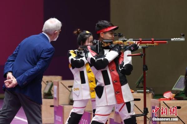 图为杨倩和杨浩然在比赛中。图片来源:视觉中国