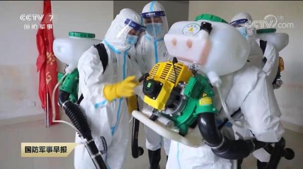 火箭军某部部队医院护士 黎敏: 最高楼层有19层,战士们从二楼装上消毒液,然后徒步走到19楼进行消杀。医院的疫情现在基本已经稳定住了,现在主要是消杀病毒。