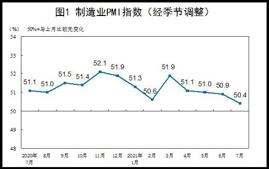 中新网7月31日电 据国家统计局网站消息,国家统计局服务业调查中心和中国物流与采购联合会31日联合发布7月中国采购经理指数运行情况。数据显示,7月份,中国制造业采购经理指数(PMI)为50.4%,低于上月0.5个百分点,继续位于临界点以上,制造业总体继续保持扩张态势,但步伐有所放缓。