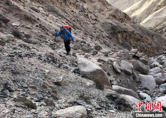 2018年初冬,邓李才在攀登冷湖赛什腾山考察途中。 田才让 摄