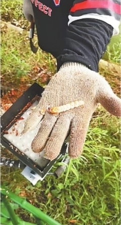 金银湖国家湿地公园掏挖出的天牛幼虫。实习生王艺朵 摄