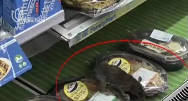 2017年5月22日晚,有网友爆料在上海地铁2号线南京西路站的全家便利店买饮料,发现陈列柜上的盒饭旁有一只大老鼠。