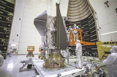 “露西”号太空探测器被封装入火箭整流罩,准备发射。图片来源:美国太空网