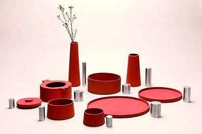 材料的有毒物质处理也是可循环过程中不可缺少的一环。铝土矿残渣,也被称为“红泥”,是铝工业中的危险副产品,每一份铝的提取都会产生超过两份以上残渣。Thus That工作室与铝工厂及研究实验室合作,发现这种废料可以被加工成陶瓷体和釉料。《红泥》这套餐具是他们研究出来的成果之一,展示了有毒废料如何被转化为安全而美丽的东西。