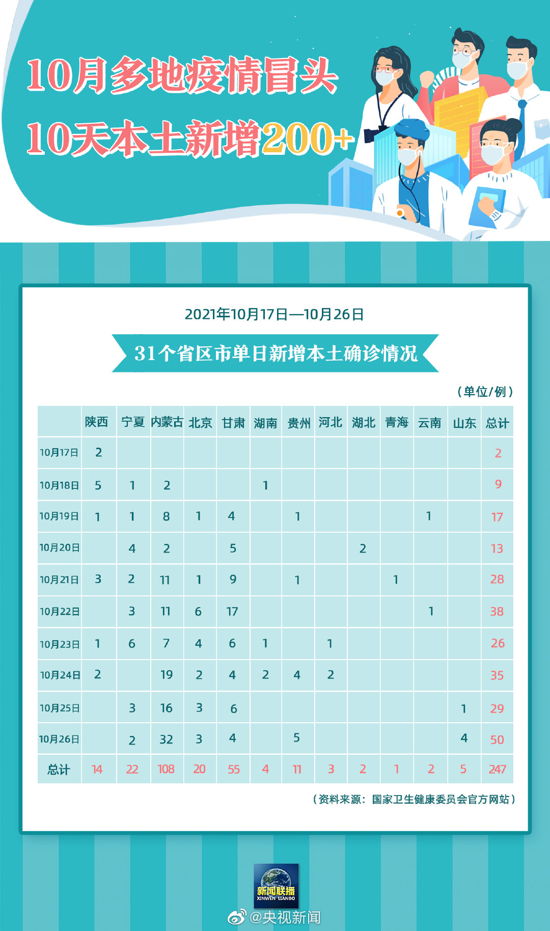 10月17日以来,31省区市已出现247例本土确诊病例。本轮疫情波及范围广,传染性强。一图看清本土确诊病例分布↓↓↓