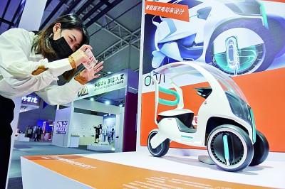 2021世界工业设计大会上展出的智能电动车模型。 唐克摄/光明图片