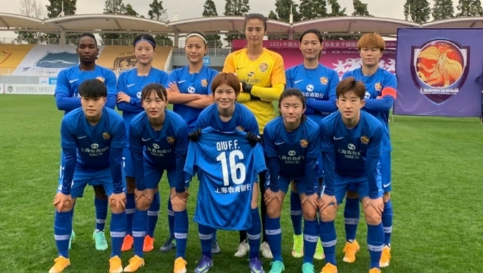 11月23日下午,上海农商银行女足在昆明征战女超联赛争冠组比赛,并以1比0击败长春女足。赛前全队拍集体照时,队员张馨高举邱芳芳的16号战袍。