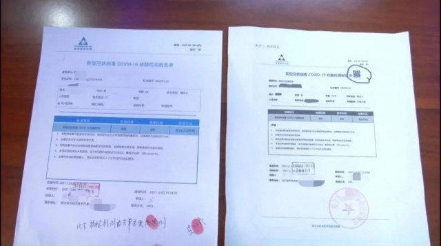 12月10日,一名旅客因为小程序上显示的核酸报告时间超出48小时,截图修改,被工作人员识破;12月11日,一名中午出行的旅客上午得知需要核酸报告,于是伪造了一份。“他算了一下时间,觉得去医院可能来不及,就临时起意想出了这个方法,自己用画图软件模仿格式做了一张,打印出来。纸质报告没有章,而且上面有错别字,核酸检测的‘酸’字成了‘算’,时间也打错了,就被工作人员发现了,只好承认是假的。”这两名旅客也分别被行政拘留5天。