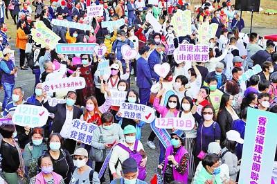 12月16日,“2021全港省级社团支持立法会选举花车大巡游”举行,呼吁广大选民踊跃参与立法会选举投票。香港文汇网图片