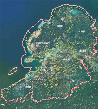 环新英湾片区包含洋浦经济开发区、白马井镇、峨蔓镇、木棠镇、新州镇、中和镇、排浦镇、王五镇等行政范围。