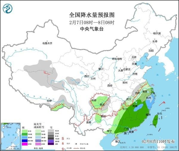 中国天气网讯 大年初五(2月5日)至初七,我国中东部将出现虎年以来最大规模雨雪天气过程。此次过程具有范围广、量级大、雨雪相态复杂、局地有冻雨的特点,影响将波及20余省区市,湖南、湖北、安徽等部分地区将有大到暴雪,西藏东南部局地大暴雪。由于此次雨雪天气过程与春节返程高峰时间重叠,公众在返程时需关注天气变化,防范道路湿滑、积雪、结冰等不利影响。