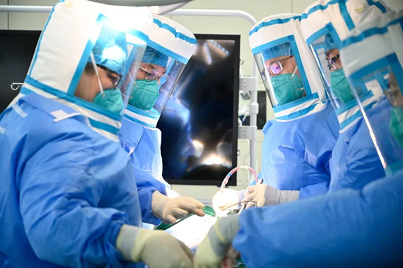 2月6日是手术日。此例手术为脊柱手术,难度及风险比较大,十分考验医生的手术思维和操作技术。手术室内,专家专注地进行手术的同时,闭环外的专家团队也通过指挥中心远程视频系统全程对手术进行观摩指导。