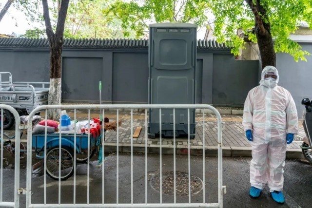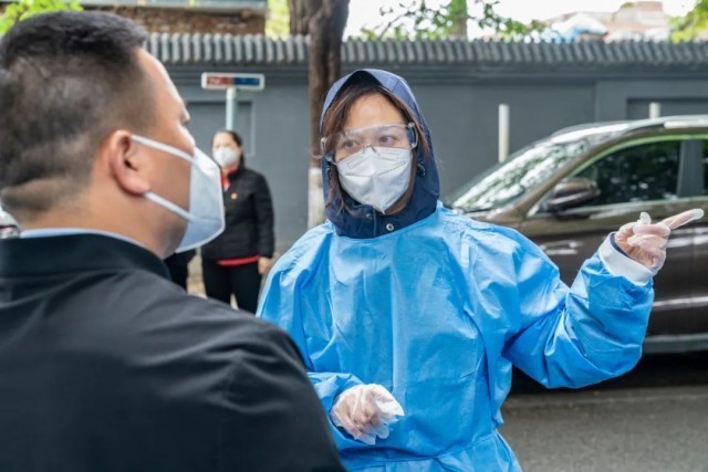 今天早上6点,由12位街道机关干部、社工组成的第一小分队进入管控区,为居民们提供心理疏导、需求问询、疑问解答。上午10点多,“大白”“小蓝”们将管控区居民家属送来的物资转送到居民手中。平时,胡同平房院居民上厕所得出院奔胡同口,管控后,为了方便居民如厕、切断可能存在的病毒传播途径,街道在院落门楼设置了临时厕所。临时厕所一人一消杀,全力保障安全。