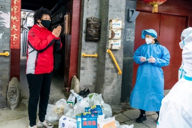 “阿姨,我给您带早饭来了。您别慌,咱们现在这里是管控区,您要是生活上什么需要,随时跟我说。”上午8点,由前门街道4名机关干部和8名社工连夜组成的12人突击保障小分队带上盒装的早饭,再次进入管控区,为来不及准备早餐的居民送上了热腾腾的粥和面点。“谢谢你们,我平时早饭都在外边儿吃,今儿正犯愁呢,你们就送过来了,有你们在我这心里就踏实。”
