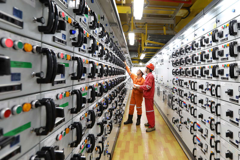 海基一号平台机械完工前夕,施工人员加紧现场设备调试工作。韩庆/摄
