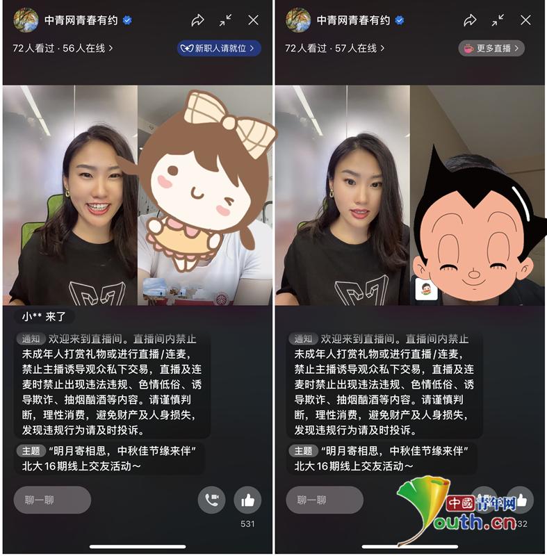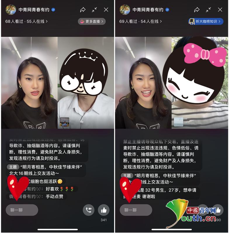 男女青年连线进行连麦互动。
