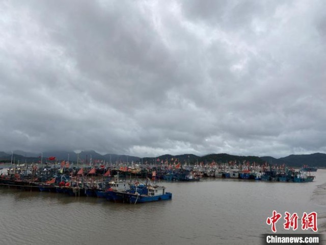 中新网宁波9月13日电(林波 项菁)今年第12号台风“梅花”(强台风级)正携风裹雨而至。13日5时许,浙江省宁波市象山县狂风呼啸,天空下着小雨。一艘艘钢质渔轮首尾相接、整齐排列,停靠在崇站港避风锚地。