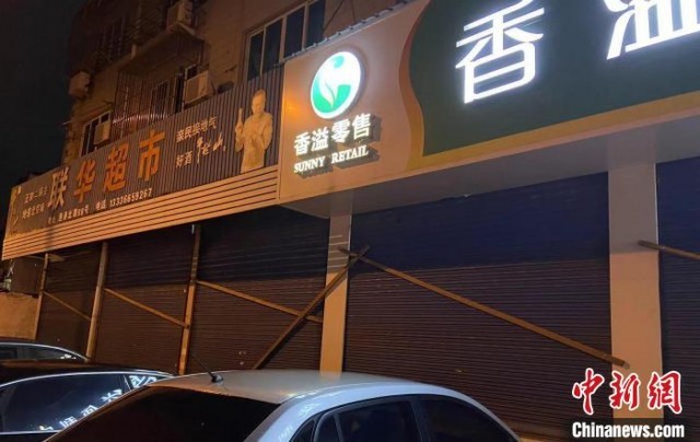 为抵御台风,商铺卷帘门钉上了木条 林波 摄