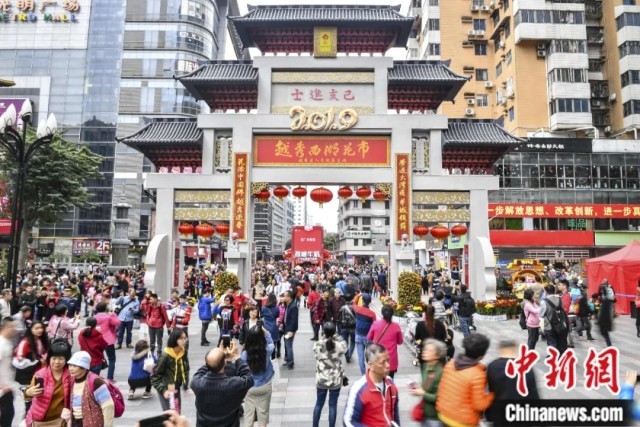 2019年2月2日,广州西湖花市开市,吸引市民前来游玩。陈骥旻 摄
