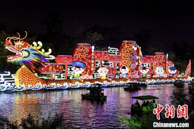 2019年2月,广州越秀公园迎春花灯璀璨绽放,缤纷炫目的各式花灯吸引市民前来观光游玩。陈骥旻 摄