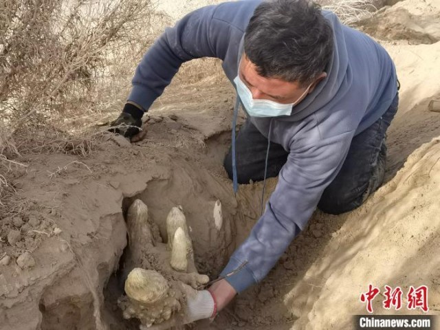 每年的3月下旬至5月,新疆大芸将迎来第一波丰收。大芸学名肉苁蓉,主要寄生在梭梭或红柳根部,每年春秋两季可采挖,素有“沙漠人参”的美誉,是传统名贵的中药材。