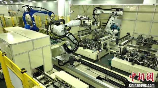图为位于山东枣庄的山东吉利欣旺达动力电池有限公司5.2Ah模组生产线。 刘雅丽 摄