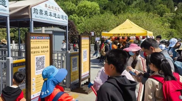 泰山景区天外村游客中心迎来五一假日首批游客 。受访者供图