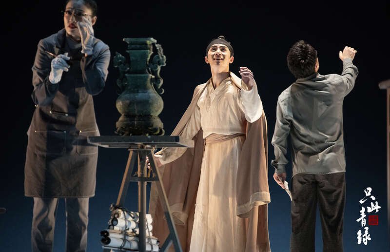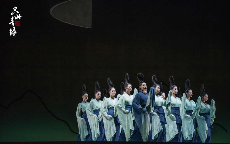 《只此青绿》以舞台艺术创新活化北宋名画《千里江山图》,讲述了一位现代故宫研究员“穿越”回北宋,以“展卷人”视角“窥”见少年画家希孟内心世界及画作创作过程的故事, 以展卷、问篆、唱丝、寻石、习笔、淬墨、入画为篇章,以“青绿”主色调为视觉线索,汇聚展现国之工匠的匠心传承,演绎千里江山的瑰丽画卷。