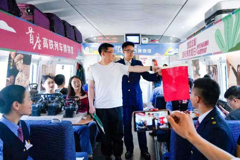 “一下子就回想起当年坐绿皮火车时的场景。当时从青岛到济南要坐整夜的时间,现在2个小时就能到,车票也更新成为更加方便的电子票,为我们铁路和国家的高速发展点赞!”旅客隋先生说。胶济铁路青岛博物馆还为旅客们送上精美的“旅游护照”,凡是持护照在G6955次环线列车、胶济铁路博物馆、胶济铁路青岛博物馆盖章打卡后,均可到胶济铁路博物馆或胶济铁路青岛博物馆领取一份精美纪念品。“下一步计划和G6955次沿途经停各站的博物馆取得联系,在列车上不定期举办主题展览,让旅客们在高铁列车上就能聆听历史的回响,我们会努力将列车打造成为行走的高铁博物馆。”G6955次列车长李凯悦说。