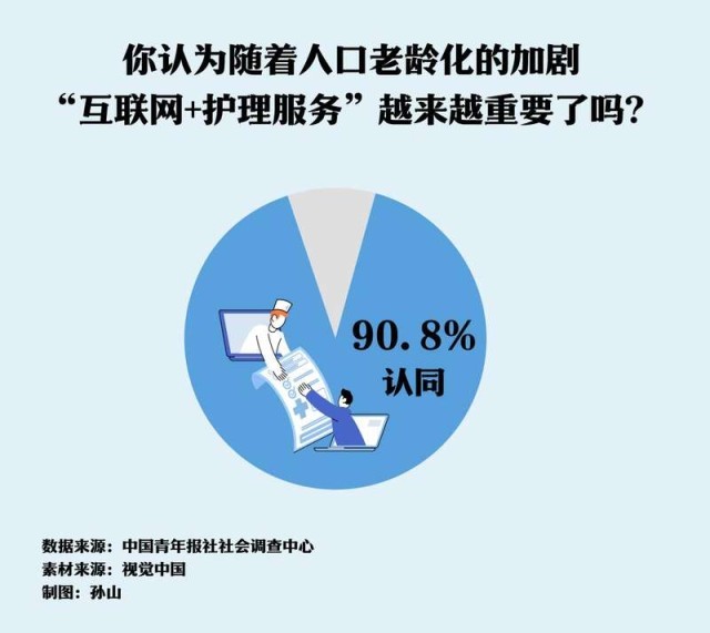 调查中,90.8%的受访者认为,随着人口老龄化程度的加深,“互联网+护理服务”越来越重要。