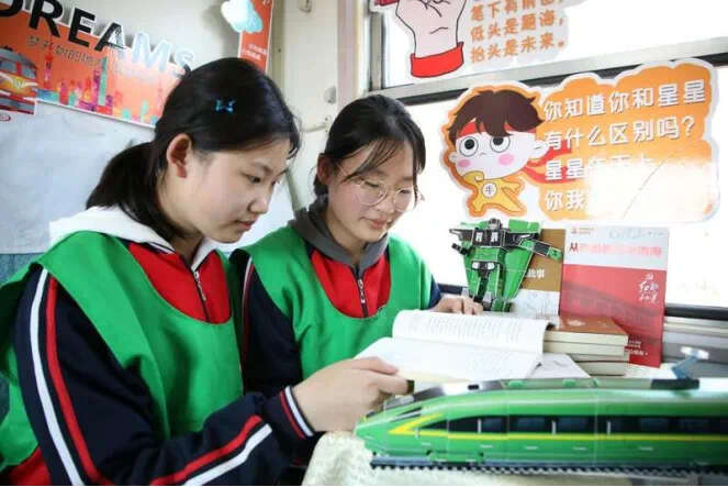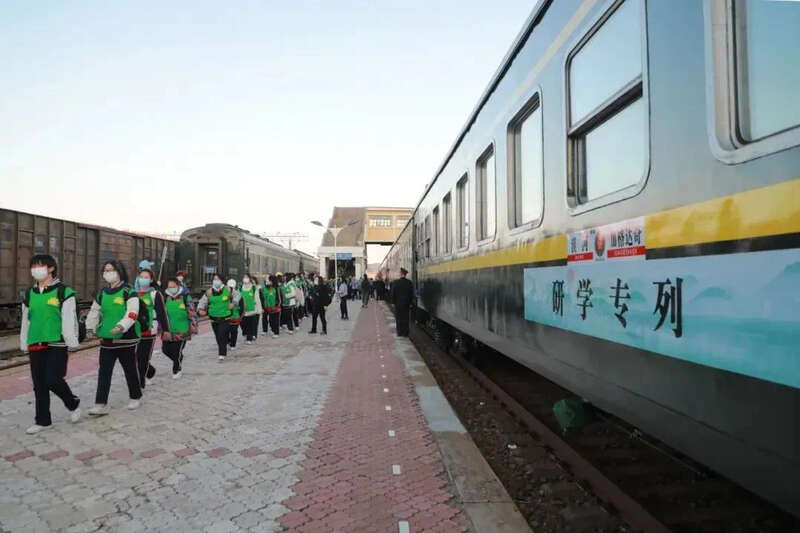 齐齐哈尔客运段团委负责对接学校负责人,制定运输计划和行程活动,让同学们边旅游、边学习,体验“游中学”,在8个多小时的旅途中,设置了包括讲解铁路列车发展史、铁道兵森林勘测队故事等主题团课、火车运行原理和安全知识等课程,设置“网红”打卡墙、读书角和多种精美研学礼物,与师生在列车上共同唱响一台“大戏”。