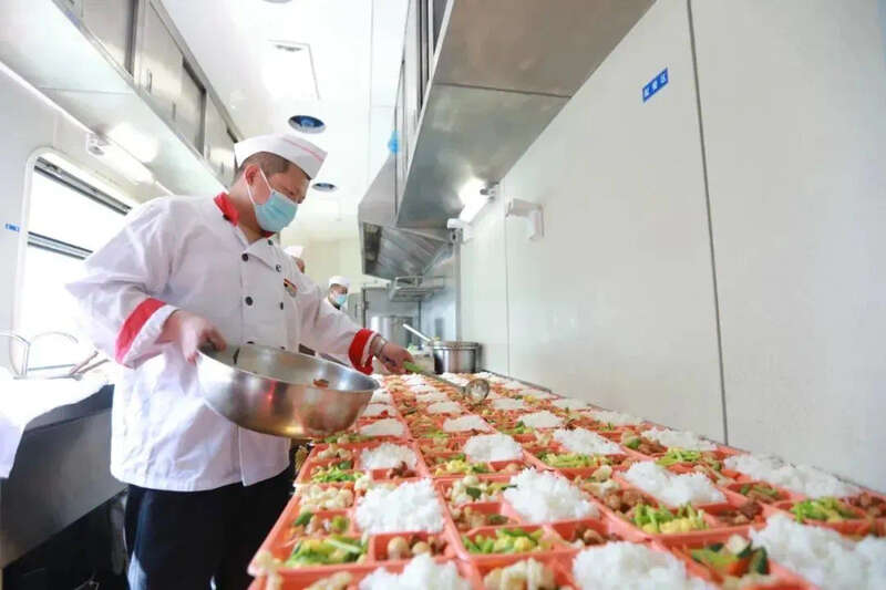 列车上,大厨们针对孩子们的需求,合理搭配健康饮食,让孩子们吃得安心、吃得放心。