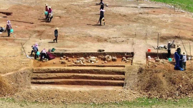 5月7日至25日,在广西文物保护与考古研究所与百色市有关专家和文博工作者的联合发掘中,考古队在平果市黎明乡蟠桃村那物屯对面的达洪江水库库区一个半岛,发现一处古墓并挖掘出铜鼓和一批文物。经有关专家初步认定:该古墓是一座战国时期墓葬,距今已有2000多年;出土的铜鼓为石寨山型,为战国时期或更早时期的铜鼓。同时出土的还有玉环(有领牙玉璧)、玉玦、铜钺、铜矛等玉器和青铜器。