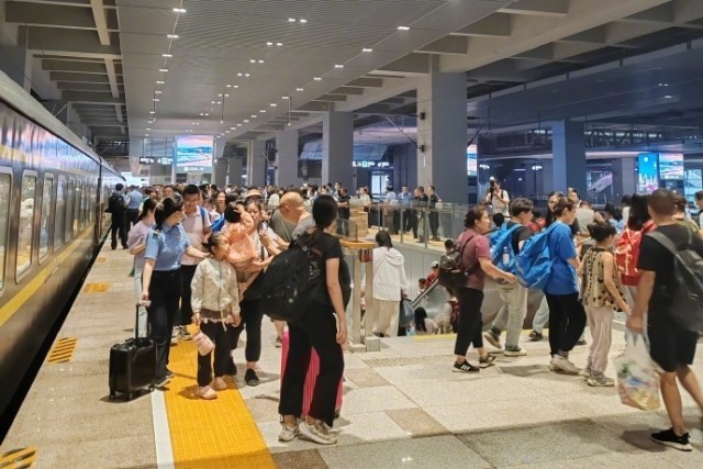 据微博“北京铁路”消息,8月2日16时29分,通过铁路转运的150名旅客与通过公路转运的300余名旅客在三家店站会合后,共同乘坐转运列车安全抵达北京丰台站。