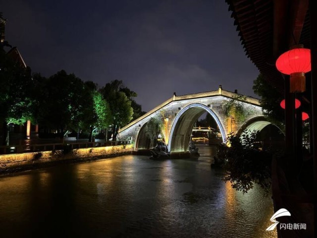 齐鲁网·闪电新闻8月28日讯 连日来的降雨让不少人的周末出行计划泡了汤,而台儿庄古城却在雨水的点缀中别有一番风采。如果说白天的台儿庄古城是一幅水墨画,那么雨夜的古城就是一幅水彩画,水巷汪塘、古街石桥、亭阁楼台在雨幕下如诗如画。