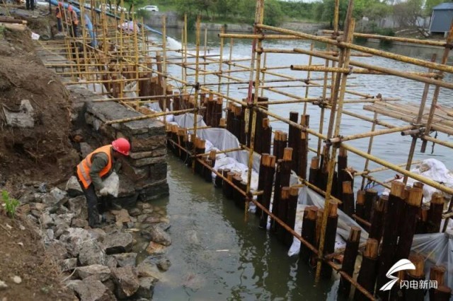 大运河中河台儿庄段,是明清时期的泇运河裁弯取直后,保留在台儿庄城区内的一段古河道,被誉为“活着的古运河”。受自然因素影响,台儿庄(月河)段的古驳岸、古码头及水工设施遗存出现裂缝、倾斜、沉降等病害,严重破坏了驳岸本体的稳定性。2020年7月,台儿庄区积极争取文保专项资金,实施了大运河台儿庄(月河)段驳岸修缮保护及安全防护栏加固工程,2021年6月完工,2023年4月通过国家文物局终期验收。修缮后的古运河保护传承了大运河文化遗产,再现了沿运历史名城的真实风貌。
