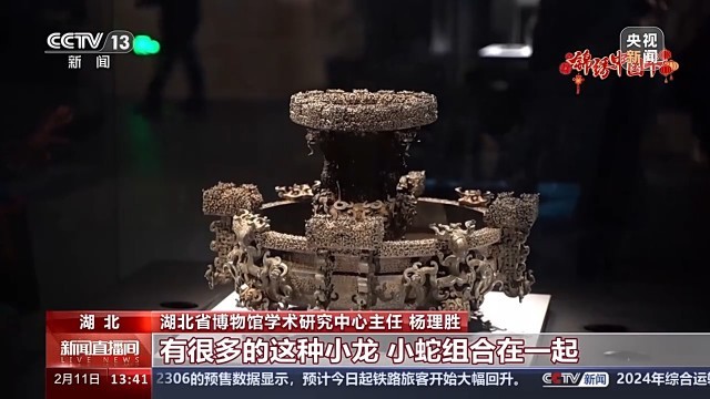湖北省博物馆学术研究中心主任 杨理胜:比如说我们曾侯乙墓的尊盘,有很多的这种小龙、小蛇组合在一起。大家感兴趣的话可以去看一看,可以去数一数。