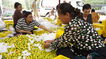 在当地鲜杏交易市场,全国各地大量收购杏子的客商已经入驻,筛选工将成堆的托克逊杏、小白杏分拣装箱、套上网罩,通过网购下单等方式,这些杏子将坐上飞机飞往全国各地。