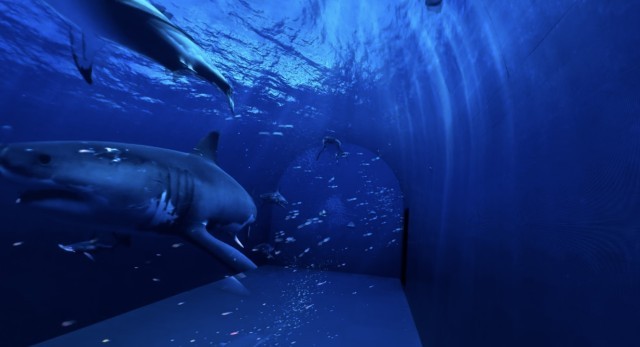 为了实现这样的目标,团队在有限的空间里呈现了当下全息影像领域最前沿的技术。中科世园数字演绎联合实验室副主任姚增辉介绍,在体验长廊,为了让观众有真实的沉浸感,实现裸眼3D,团队克服长廊上圆下方的结构,通过算法将视频画面调整到最适合人类眼球接受的状态,并通过近大远小等原理“欺骗”眼球,让大脑产生置身海底的错觉。团队还充分运用美学设计,让画面不仅真实,而且具有美感,在颜色、亮度、比例结构达到最佳效果。此外,长廊还运用多屏幕联动、超大分辨率拼接技术、多模态体感跟踪交互等,实现实时交互,打破虚拟世界和真实世界的视觉壁垒。