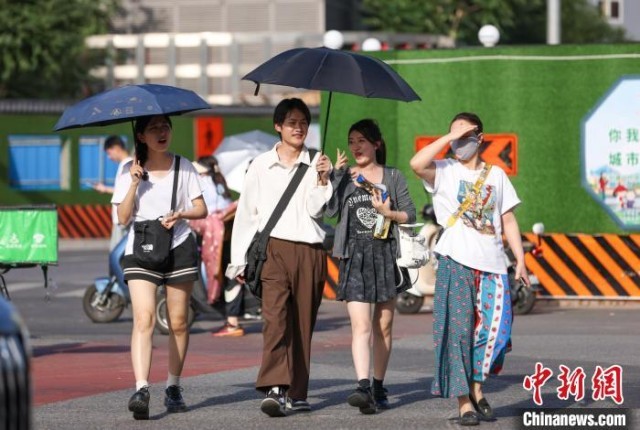6月12日,市民冒着高温出行。当日,北京高温天气持续。记者 贾天勇 摄