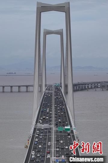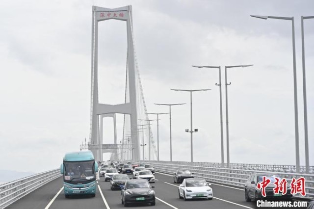 6月30日,深中通道通车首日,车流密集。中新社记者 陈骥旻 摄