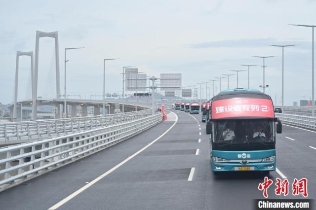 6月30日,建设者乘坐专列游览深中通道。中新社记者 陈骥旻 摄