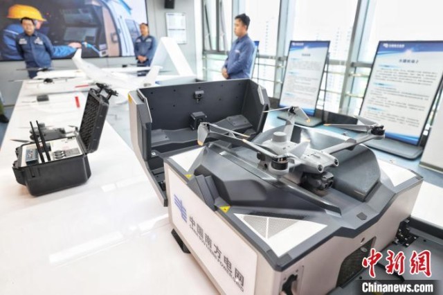 图为智能作业中心展示的各类巡检无人机。 中新网记者 瞿宏伦 摄