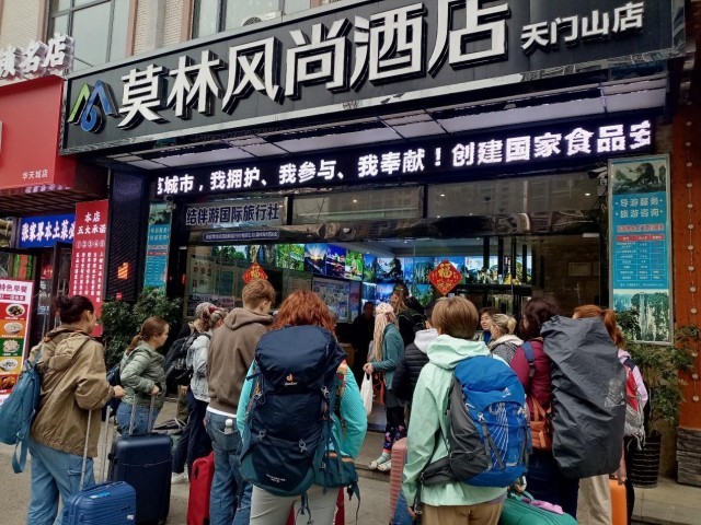 外国游客抵达湖南张家界天门山某酒店