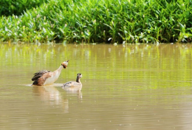 7月6日拍摄的拉鲁湿地水面上的凤头。新华社记者 张汝锋 摄